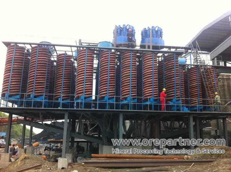 Fine-grained materials are sorted by spiral chute for roughing and concentrating.